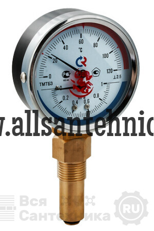 Термоманометр ТМТБ-31Р Dy 80 с нижн. подкл., 1/2", 6 бар 0-120* (L=46мм, кл. т...