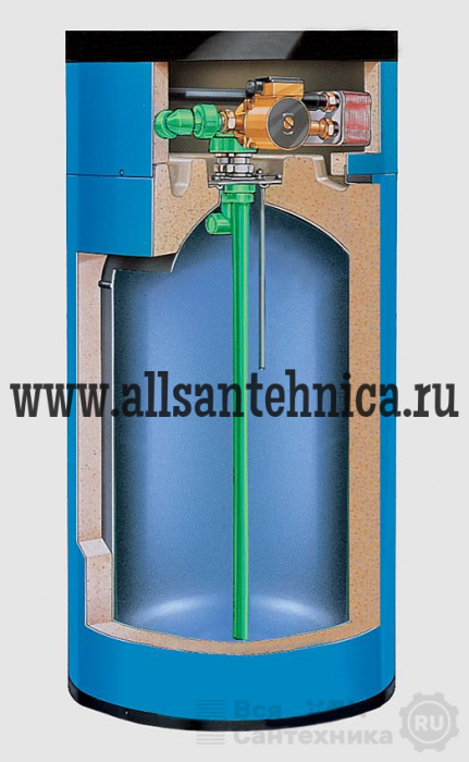Вертикальный бак накопитель Buderus Logalux SF1000.5-С предназначен для нагрева воды через внешний теплообменник. В системе с промежуточным теплообменником, бак наполняется подогретой (горячей) водой загрузочным насосом сверху вниз, при этом образуются слои воды.