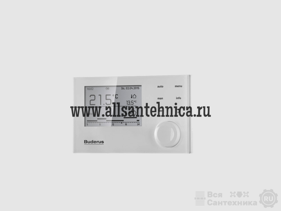 Пульт управления Buderus Logamatic RC310 позволяет регулировать температуру в зависимости от ваших потребностей. Регулирование мощности происходит в зависимости от температуры в помещении или от температуры прямой линии. При подключении датчика наружной температуры, регулирование температуры прямой линии может производиться в зависимости от наружной температуры/погодных условий.