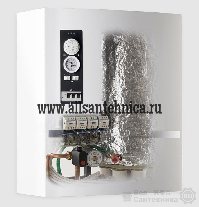 Электрический котел Buderus Logamax E213 30кВт простой и функциональный, малогабаритный и долговечный. Регулировка мощности может производиться непосредственно на котле или через подключенный комнатный термостат.