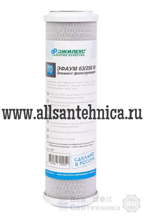 Элемент фильтрующий предназначен для сорбционной очистки воды от хлора, органических соединений, улучшает органолептические показатели воды (вкус, запах, цвет). Очищающий материал - пористый блок из активированного угля на минеральной основе.
