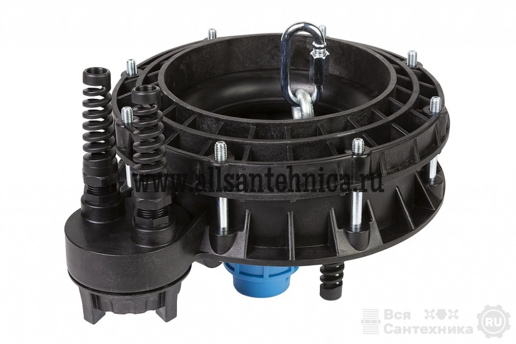 Предназначен для герметизации устья скважины с наружным диаметром обсадной трубы от 140 до 160 мм. Предохранит скважину от попадания в неё поверхностных, грунтовых вод и посторонних предметов. Позволяет увеличить дебит неглубоких скважин за счет образующегося разрежения между оголовком и понижающимся в процессе работы насоса уровнем воды. Изготовлен из высокопрочного пластика. Повышает надежность подвешивания насоса. Упрощает эксплуатацию технического колодца. Оголовок, с базовой (стационарной) частью крепится на обсадной трубе один раз за весь период эксплуатации оголовка. На базовую часть, в свою очередь, устанавливается съемная крышка, через которую проходят электрокабель и напорная труба. Такие оголовки позволяют производить простое, многократное соединение/разъединение электрокабеля в клеммной коробке при извлечении насоса из скважины. Рассчитан на подвешивание груза до 200 кг.