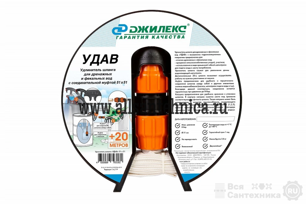 Удлинитель шланга служит для увеличения длины водоотводящей магистрали. Дополнительные 20 м шланга позволяют осуществлять работы на нужном расстоянии от насоса. Предназначен для отвода дренажных и фекальных вод, орошения сельскохозяйственных угодий и участков. Используются в виде временной гибкой магистрали для подачи (отвода) воды к месту потребления (сброса). Катушка, идущая в комплекте, обеспечивает удобное хранение шланга. Может быть использована в качестве приспособления, позволяющего перекидывать шланг через различные препятствия.