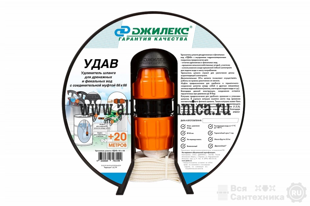 Удлинитель шланга служит для увеличения длины водоотводящей магистрали. Дополнительные 20 м шланга позволяют осуществлять работы на нужном расстоянии от насоса. Предназначен для отвода дренажных и фекальных вод, орошения сельскохозяйственных угодий и участков. Используются в виде временной гибкой магистрали для подачи (отвода) воды к месту потребления (сброса). Катушка, идущая в комплекте, обеспечивает удобное хранение шланга. Может быть использована в качестве приспособления, позволяющего перекидывать шланг через различные препятствия.