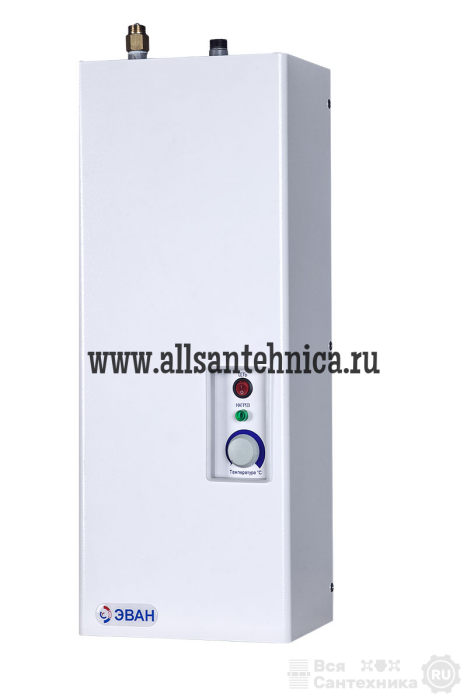 • аварийным термовыключателем, который срабатывает при температуре 85°С и защищает прибор от перегрева. В серии ЭВАН В1 предусмотрена возможность плавной регулировки температуры воды в диапазоне от 30 до 75 °С.