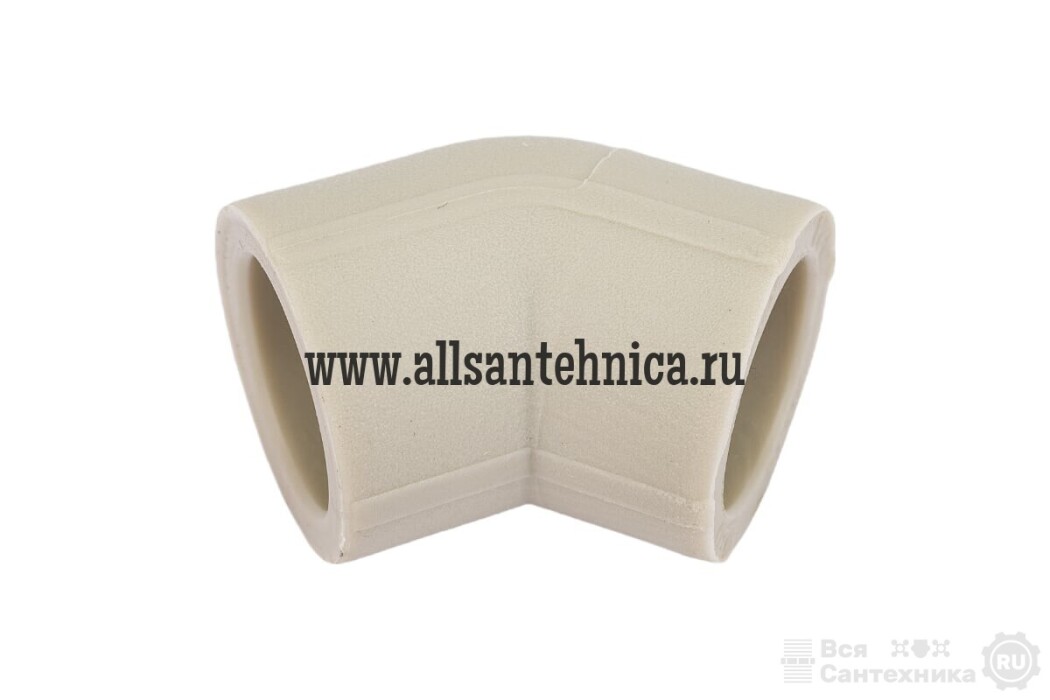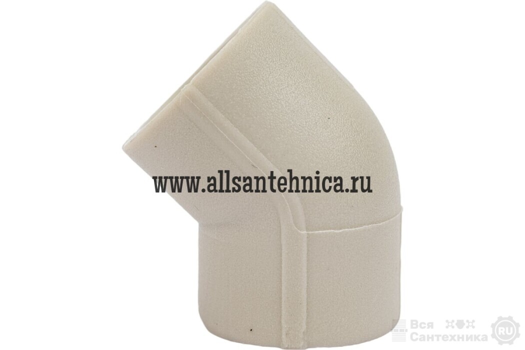 Полипропиленовый фитинг. Используется для поворота трубопровода на 45°. Производится методом литья под давлением.