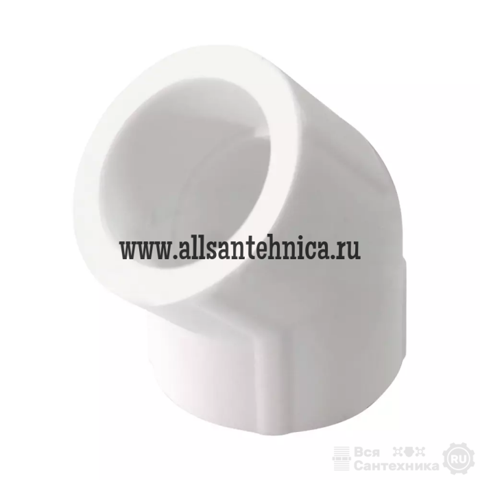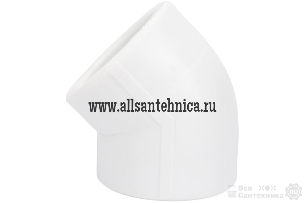 Полипропиленовый фитинг. Используется для поворота трубопровода на 45°. Производится методом литья под давлением.