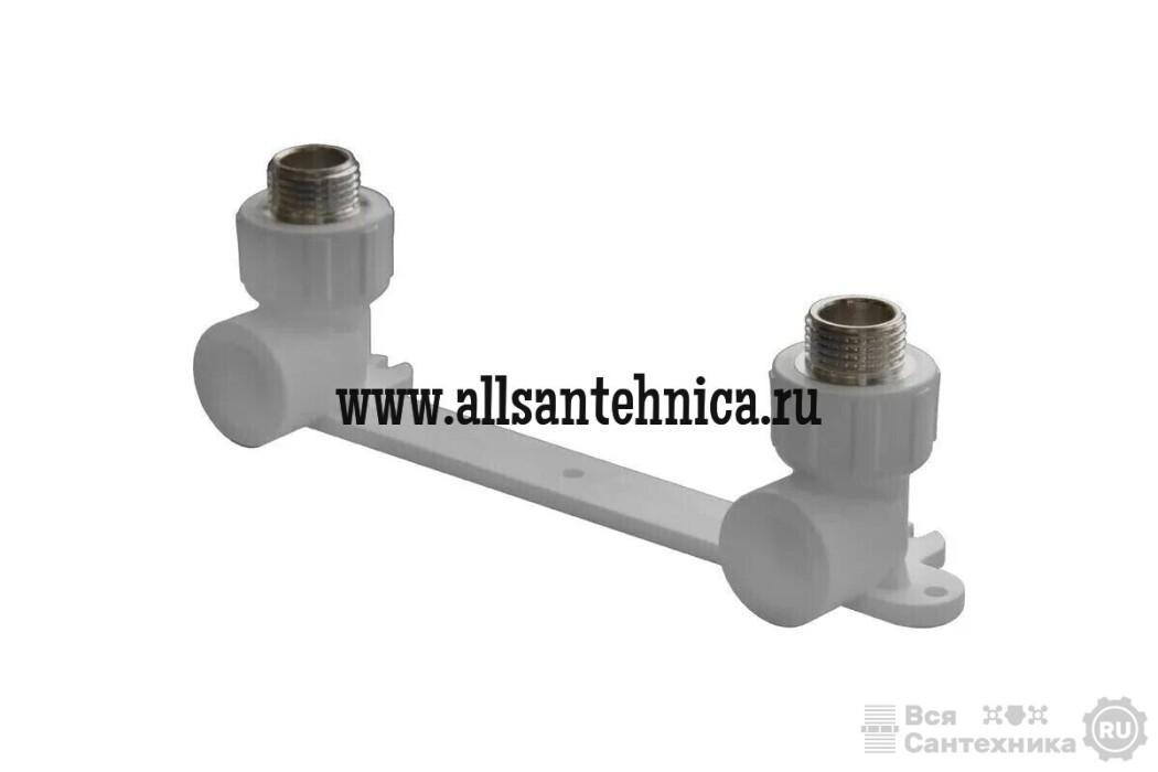 Комплект настенный для смесителя представляет из себя комбинированный полипропиленовый фитинг. Используется для монтажа к трубопроводу и установки смесителя непосредственно на стене. Латунные части производятся методом горячего штампования, пластиковые - методом литья под давлением.