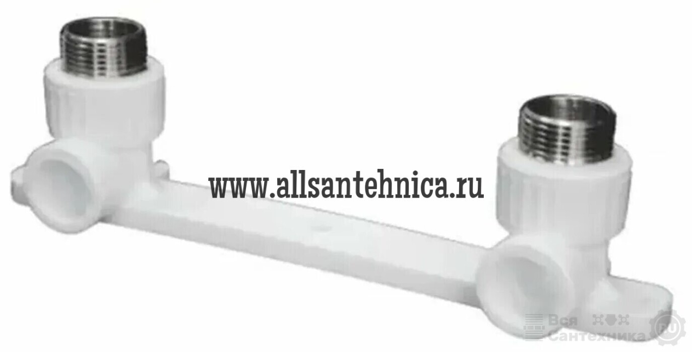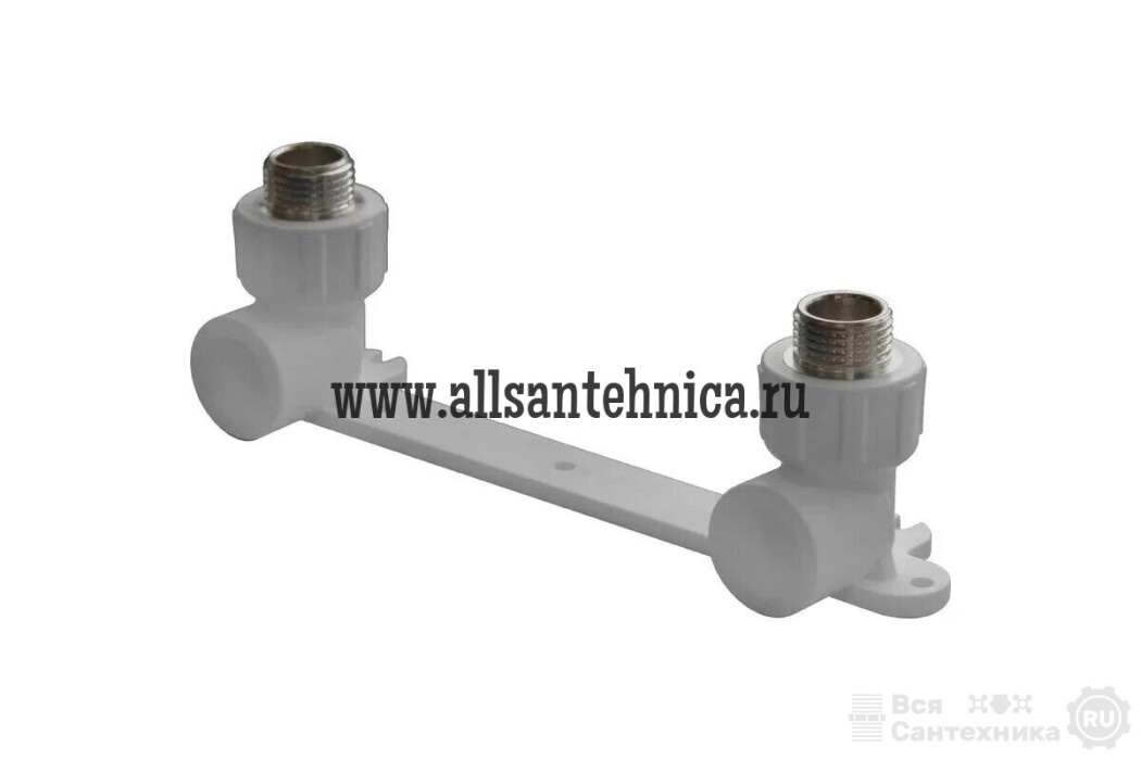 Комплект настенный для смесителя представляет из себя комбинированный полипропиленовый фитинг. Используется для монтажа к трубопроводу и установки смесителя непосредственно на стене. Латунные части производятся методом горячего штампования, пластиковые - методом литья под давлением.