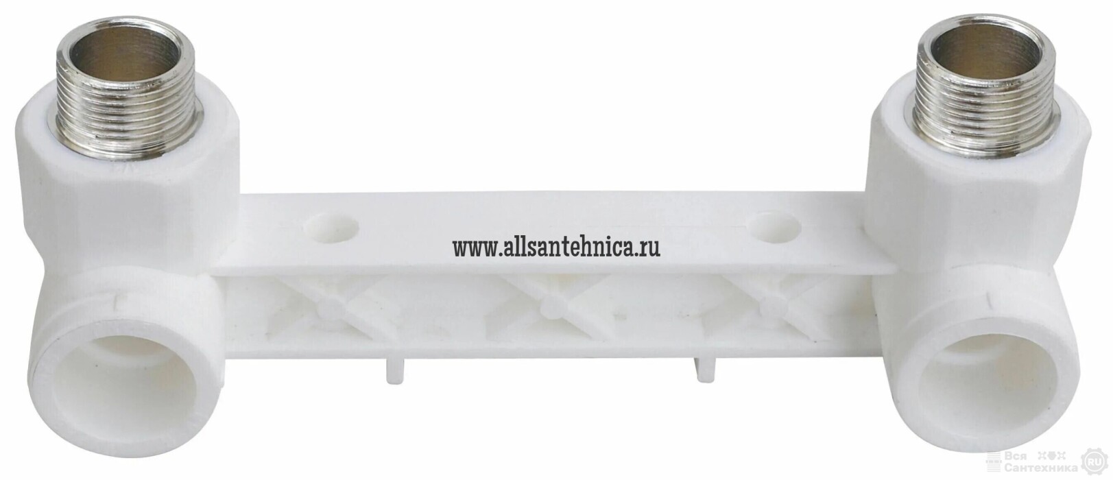 Комплект настенный для смесителя представляет из себя комбинированный полипропиленовый фитинг. Используется для монтажа к трубопроводу и установки смесителя непосредственно на стене. Латунные части производятся методом горячего штампования, пластиковые - методом литья под давлением.