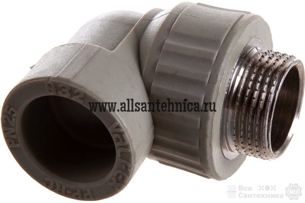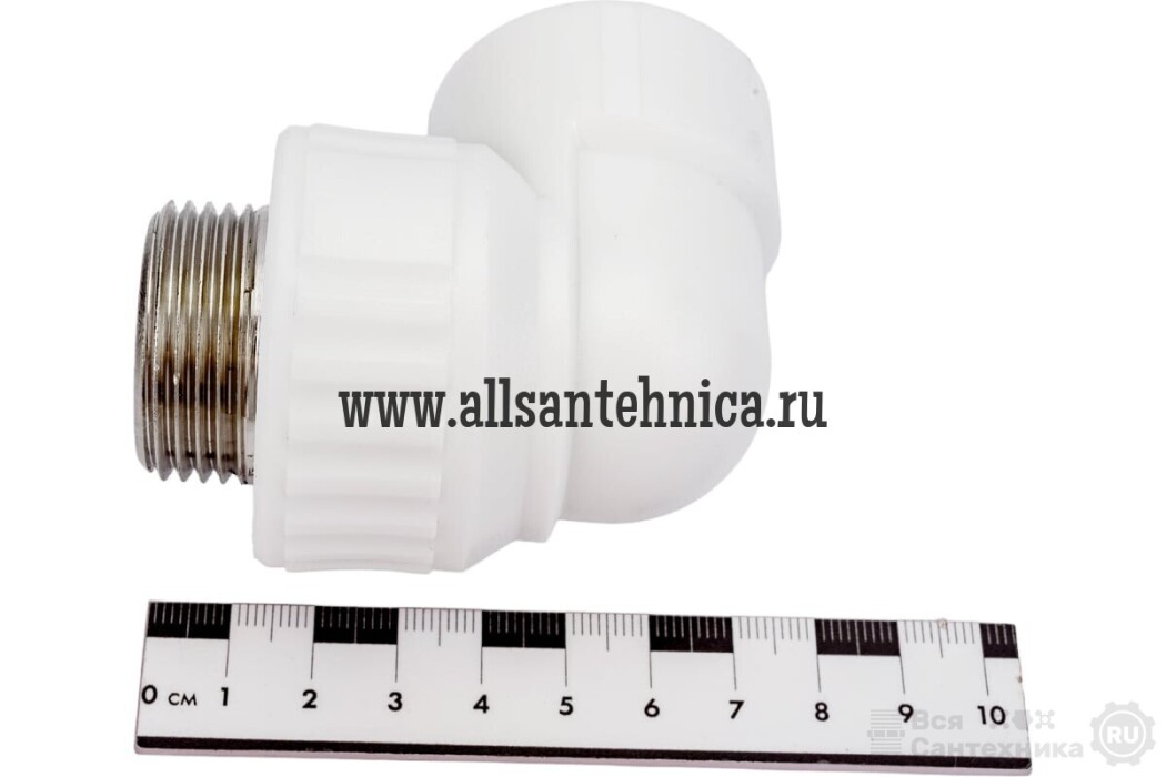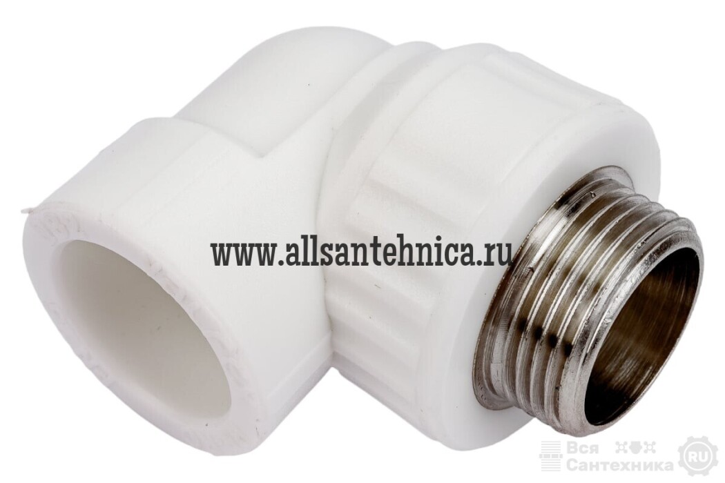 Комбинированный полипропиленовый фитинг. Используется для изменения направления потока и перехода на трубную резьбу. Латунные части производятся методом горячего штампования, пластиковые - методом литья под давлением.