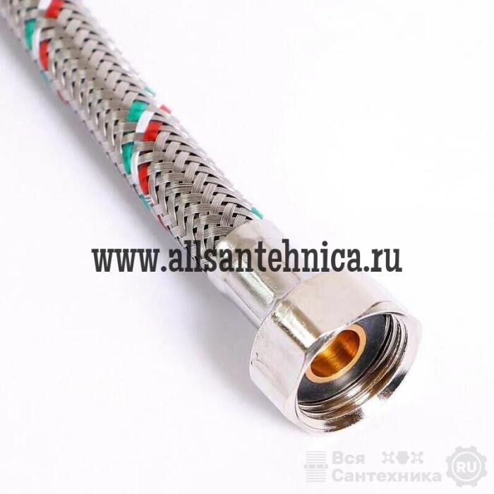 Накидная гайка, пресс-гильзы и оплетка подводок изготовлены из нержавеющей стали, ниппель – из качественной сантехнической латуни, шланг – из этиленпропиленового каучука EPDM.Срок службы гибкой подводки VALFEX - 10 лет.