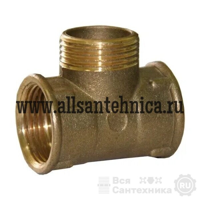 Латунный трехсторонний фитинг, равнопроходной, соединяющий три отрезка трубы, один из которых устанавливается перпендикулярно двум другим. Резьба - внутренняя/наружная/внутренняя цилиндрическая трубная по ГОСТу 6357-81. Фитинги рассчитаны на рабочее давление (PN) 2,5 и 4,0 МПа и температуру транспортируемых сред от -20 до +150 °С.