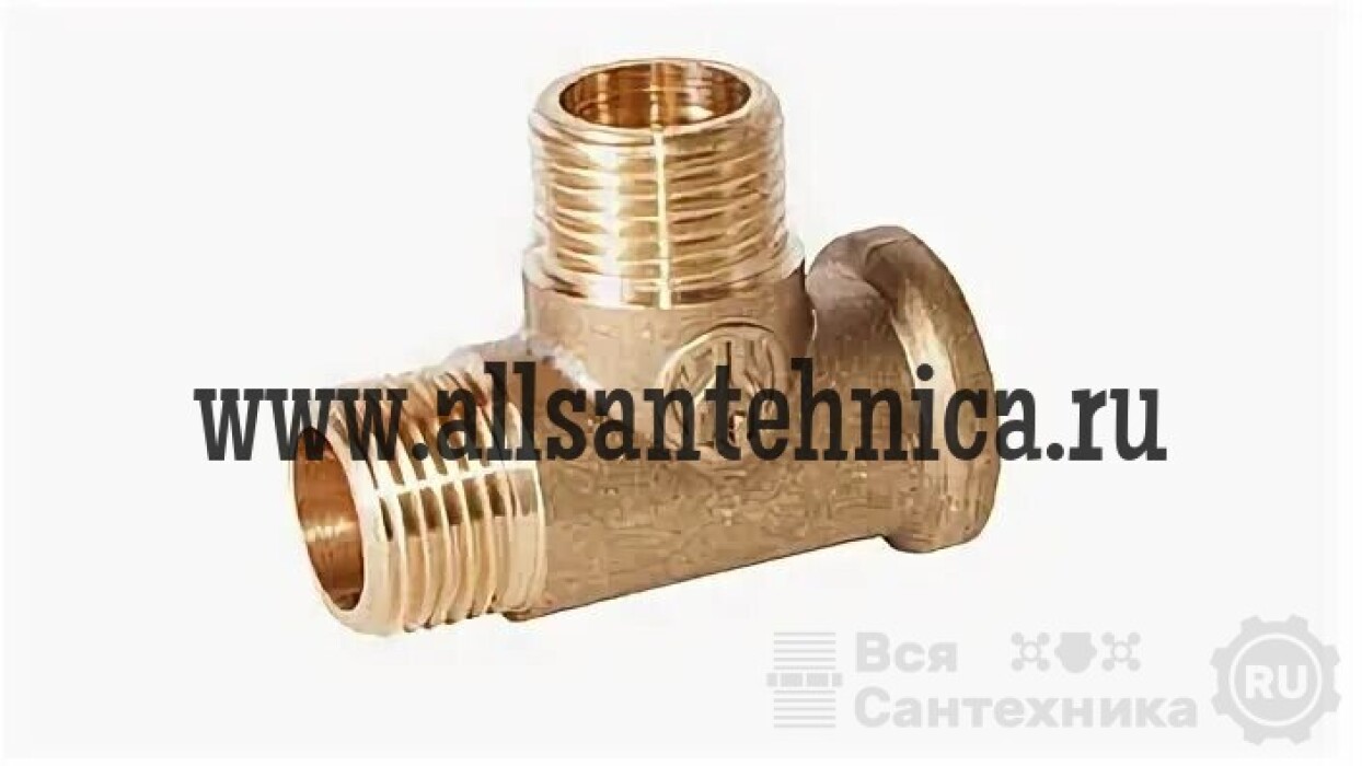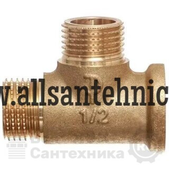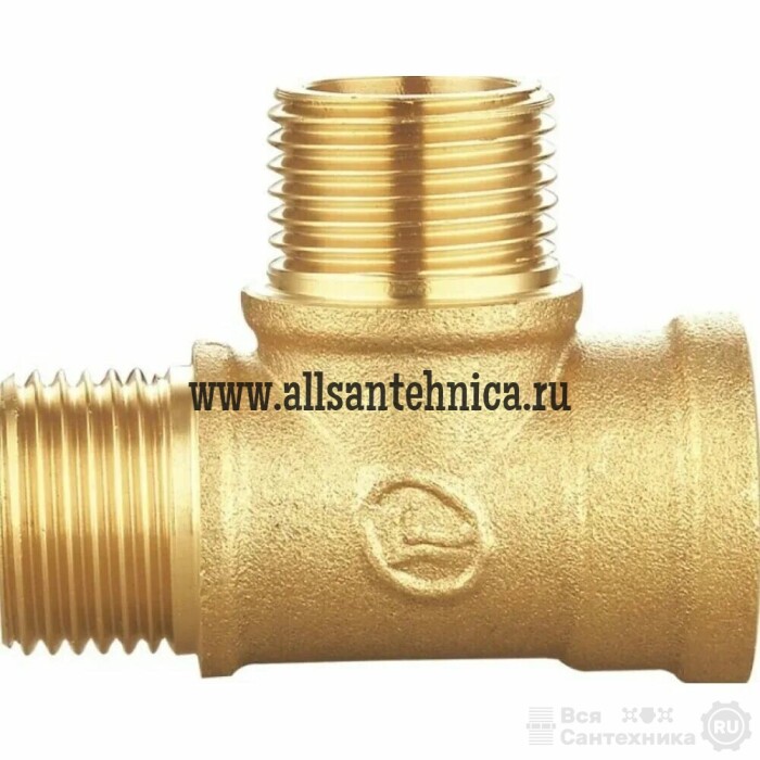 Латунный трехсторонний фитинг, равнопроходной, соединяющий три отрезка трубы, один из которых устанавливается перпендикулярно двум другим. Резьба - внутренняя/наружная/наружная цилиндрическая трубная по ГОСТу 6357-81. Фитинги рассчитаны на рабочее давление (PN) 2,5 и 4,0 МПа и температуру транспортируемых сред от -20 до +150 °С.