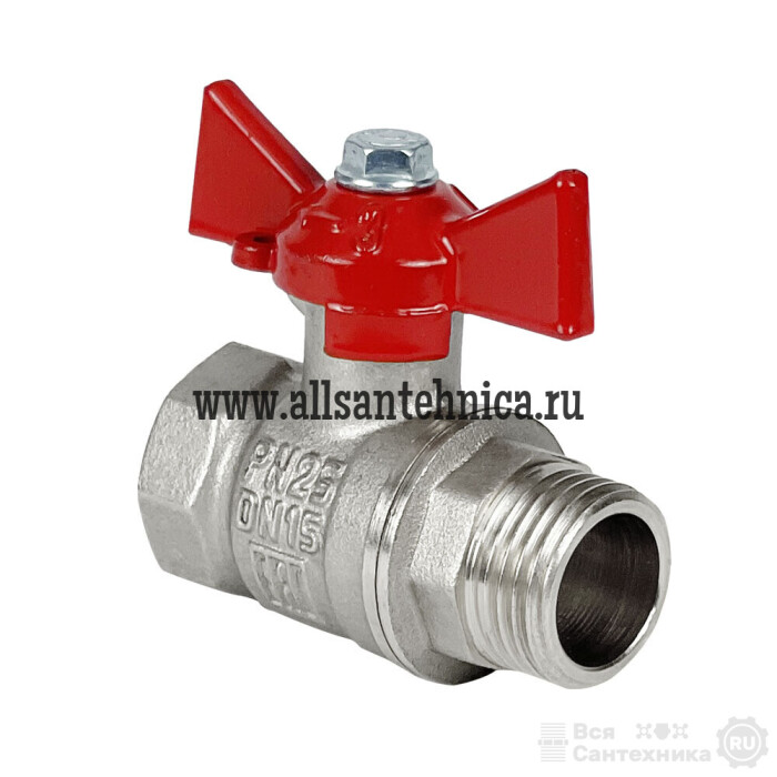 Valfex VF.227.NLB1.034 Кран шаровой OPTIMA (с никелевым покрытием), с американкой, ручка-бабочка (внутр.-наруж.)