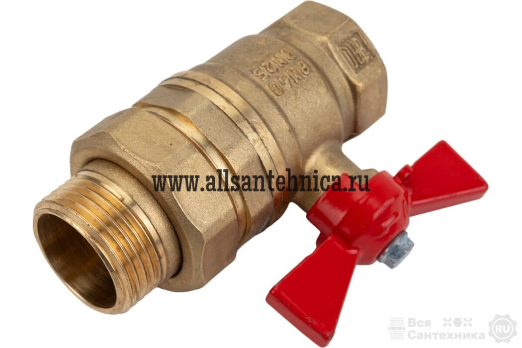 Valfex VF.227.NLB1.034 Кран шаровой OPTIMA (с никелевым покрытием), с американкой, ручка-бабочка (внутр.-наруж.)