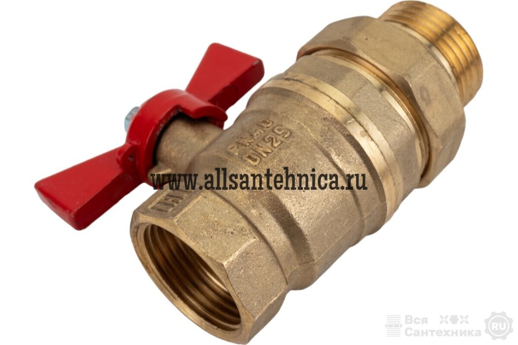 Кран шаровой для ВОДЫ 1 1/4" ВР/НР ручка-бабочка, американка, латунный VALFEX 11Б27фт1М (16/4)