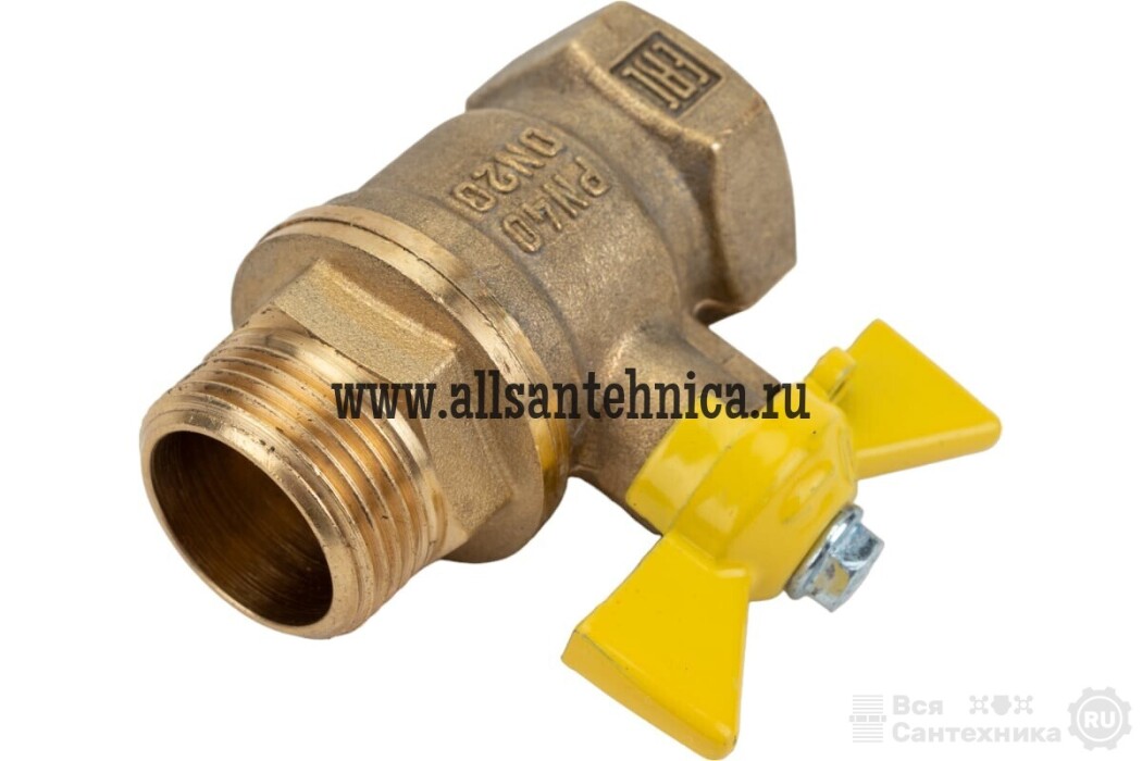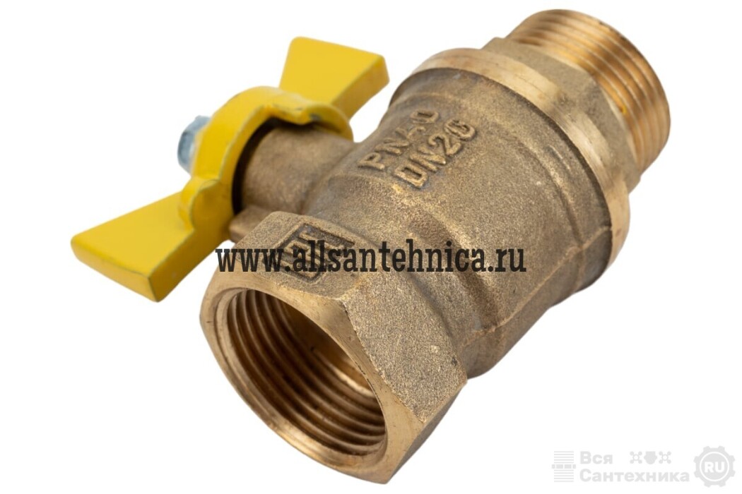 ГС Кран шаровой для ГАЗА 3/4" ВР/НР ручка-бабочка, латунный VALFEX 11Б27фтМ (40/10)