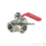 Латунный никелированный трехходовой кран, обеспечивающий изменение потока в трубопроводах систем промышленного и технического водоснабжения, отопления, технологических установок. Ремонтопригоден, оснащен шаровым затвором с T-образным каналом, тефлоновыми (PTFE) седельными кольцами и сальниковым уплотнением, рукояткой из стали с защитным покрытием из ПВХ . Минимальный ресурс крана – 20 тыс. циклов. Максимальная температура рабочей среды – 150 °С. Резьба всех присоединений – внутренняя.
