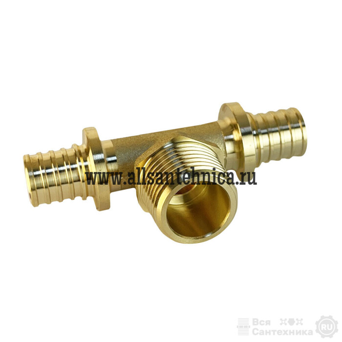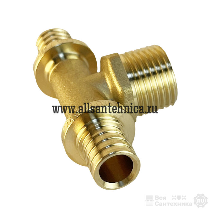 Латунные аксиальные тройники надвижные с переходом на наружную резьбу предназначены для создания неразъемных соединений труб из сшитого полиэтилена PEX и полиэтилена повышенной термостойкости PE-RT размерной серии S3,2 (SDR 7,4) по ГОСТ 32415-2013. Применяются в системах питьевого и хозяйственного водопровода, горячего водоснабжения, отопления, сжатого воздуха, а также на технологических трубопроводах, транспортирующих жидкости, не агрессивные к материалам труб и соединителей.