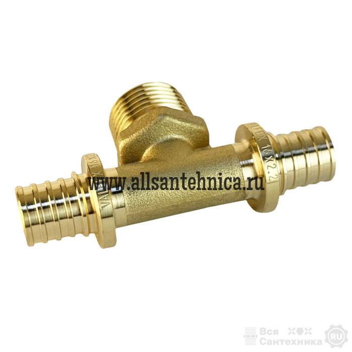 Латунные аксиальные тройники надвижные с переходом на наружную резьбу предназначены для создания неразъемных соединений труб из сшитого полиэтилена PEX и полиэтилена повышенной термостойкости PE-RT размерной серии S3,2 (SDR 7,4) по ГОСТ 32415-2013. Применяются в системах питьевого и хозяйственного водопровода, горячего водоснабжения, отопления, сжатого воздуха, а также на технологических трубопроводах, транспортирующих жидкости, не агрессивные к материалам труб и соединителей.