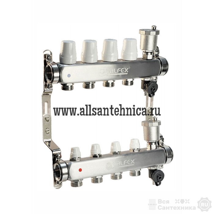 Коллекторная группа из нержавеющей стали с регулирующими и балансировочными клапанами, воздухоотводчиками и дренажными кранами ТМ VALFEX – позволяет с помощью балансировочных клапанов производить балансировку петель при включенном циркуляционном насосе.