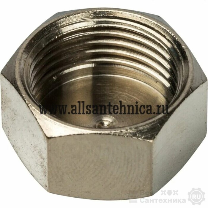 Заглушка резьбовая с никелевым покрытием— латунный фитинг с шестигранной головкой, предназначенный для закрытия конечного участка трубы. Имеет внутреннюю трубную