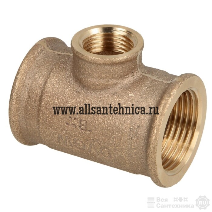 Тройник переходной (внутр.) - латунный трехсторонний фитинг с переходом на меньший диаметр в центральном выходе. Резьба – внутренняя, цилиндрическая трубная по ГОСТу 6357-81. Фитинги рассчитаны на рабочее давление (PN) 2,5 и 4,0 Мпа и температуру транспортируемых сред от -20 до +150 °С.