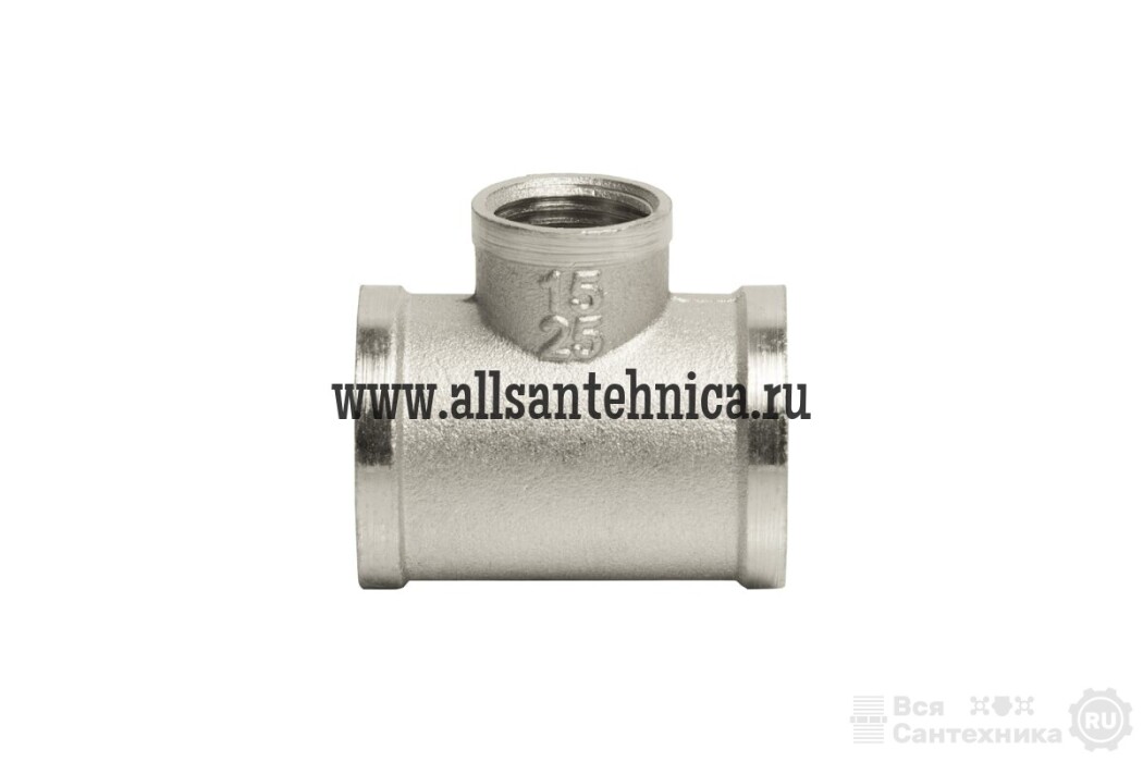 Тройник переходной с никелевым покрытием (внутр.) - латунный трехсторонний фитинг с переходом на меньший диаметр в центральном выходе. Резьба – внутренняя, цилиндрическая трубная по ГОСТу 6357-81. Фитинги рассчитаны на рабочее давление (PN) 2,5 и 4,0 Мпа и температуру транспортируемых сред от -20 до +150 °С.