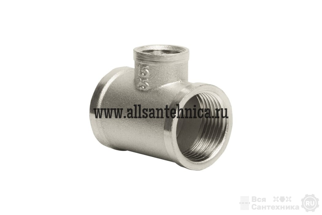 Тройник переходной с никелевым покрытием (внутр.) - латунный трехсторонний фитинг с переходом на меньший диаметр в центральном выходе. Резьба – внутренняя, цилиндрическая трубная по ГОСТу 6357-81. Фитинги рассчитаны на рабочее давление (PN) 2,5 и 4,0 Мпа и температуру транспортируемых сред от -20 до +150 °С.