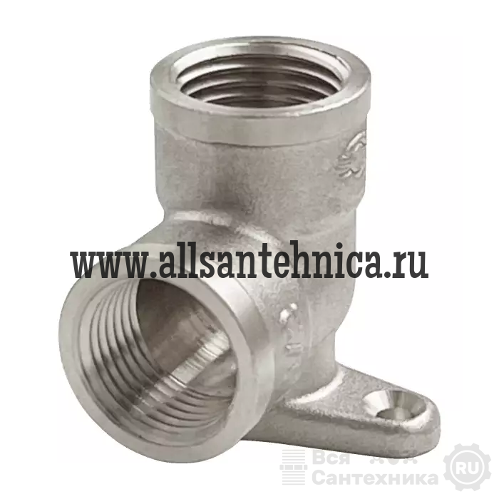 Водорозетка с никелевым покрытием — (угольник с креплением) позволяет соединить два элемента трубопровода под углом 90° и прикрепить к стене. Применяется в системах водоснабжения, отопления, полива.Резьба – внутренняя, цилиндрическая трубная по ГОСТу 6357-81. Фитинги рассчитаны на рабочее давление (PN) 2,5 и 4,0 МПа и температуру транспортируемых сред от -20 до +150 °С.