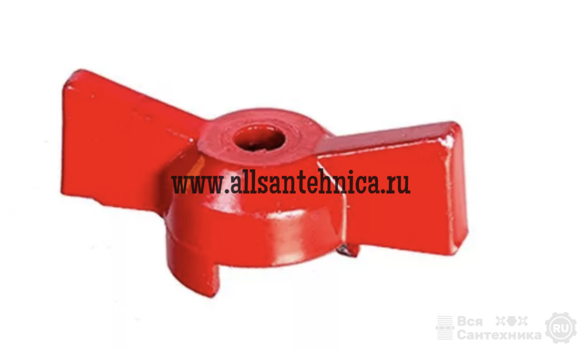 Ручка типа «бабочка» под пломбу для шарового крана VALFEX. Выполнена из алюминиевого сплава марки АК9М2. Окрашена эпоксидной краской в красный цвет.Ручка-бабочка под пломбу для крана предназначена для использования в качестве запасной детали в случае утери или при необходимости замены аналогичной штатной детали шаровых кранов VALFEX.
