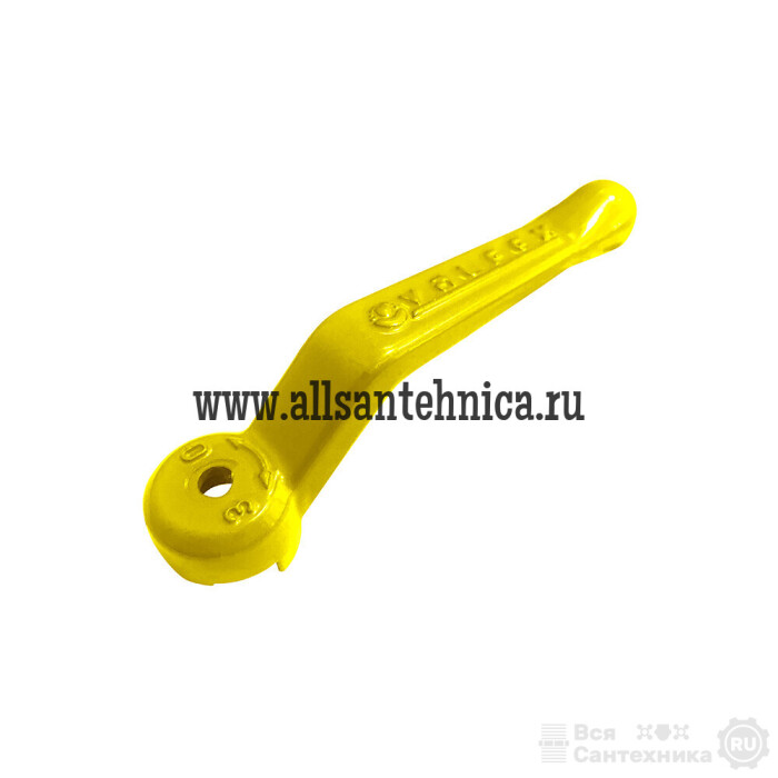 Ручка типа «рычаг» для шарового крана VALFEX. Выполнена из алюминиевого сплава марки АК9М2. Окрашена эпоксидной краской в желтый цвет.
