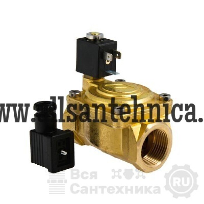 (87-CEME) Электромагнитный (соленоидный) мембранный клапан предназначен для автоматического управления потоками воды, других жидкостей с вязкостью до 40 сСт и газов, неагрессивных к используемым материалам. Открытие и закрытие клапана производится с помощью встроенной эластичной мембраны, позволяет обойтись соленоидом небольшой мощности – 6 Вт. Он управляет золотником импульсной трубки, через которую рабочая среда поступает в надмембранное пространство. Золотник выполнен из витона (FPM), корпус и крышка корпуса – из сантехнической латуни CW617N, внутренние детали – из нержавеющей стали, мембрана – из NBR (под заказ – EPDM). Максимальная рабочая температура транспортируемой среды – 90 (для мембраны из EPDM – 130) °C, номинальное давление – 10 бар. Класс защиты клапана – IP 65. Минимальный перепад давления – 0,3 бара. Напряжение питания соленоида – переменное, 220 В. Нормально открытый.