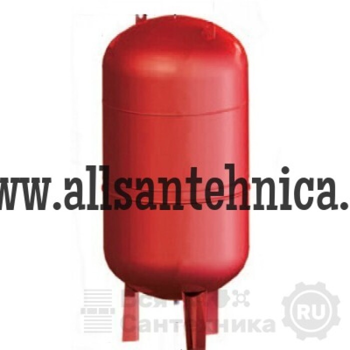 500–750 л. Бак предназначен для компенсации температурного расширения теплоносителя, сглаживания колебаний давления и гидравлических ударов в системах отопления с температурой теплоносителя до 100 °С и рабочим давлением до 6 или 8 бар, в зависимости от модели. В качестве теплоносителя может использоваться вода и антифриз на основе гликолей. Мембрана бака изготовлена из синтетического каучука EPDM в виде замкнутой ступенчатой полости. Рабочая жидкость не соприкасается со стенками корпуса, что делает бак пригодным для использования в питьевом водоснабжении. Конструкция мембраны предотвращает возникновение в ней критических растягивающих усилий и трение о корпус. Материал мембраны характеризуется эластичностью, температурной и химической устойчивостью, долговечностью. Заводское давление воздушной подушки (преднастройка) – 1,5 бара. Корпус мембранного расширительного бака выполнен из углеродистой оцинкованной стали и окрашен снаружи термостойкой эпоксидной эмалью красного цвета (RAL 3000). Бак оснащен ножками и предназначен для вертикальной установки. Присоединительный штуцер находится внизу бака.