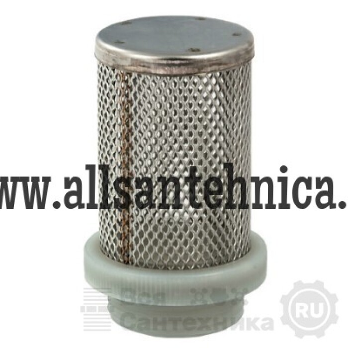 (H.157) Сетчатая фильтрующая насадка из нержавеющей стали марки AISI 304 c резьбовой присоединительной муфтой из пластика ABS (резьба – наружная). Обратный клапан с такой концевой насадкой может применяться в качестве приемного клапана для водозаборных насосов.