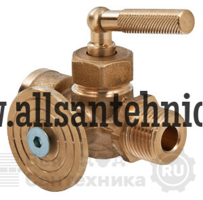 (OR.1808) Кран латунный пробковый трехходовой предназначен для присоединения манометра к трубопроводам, транспортирующим жидкости и газы с температурой до 80 °С под давлением до 16 бар. Корпус крана изготовлен методом горячего прессования из латуни марки CW 617N, без гальванопокрытия, и имеет фланец для подключения контрольного манометра. В зависимости от положения запорной пробки с Т-образным проходом, подсоединенный к крану прибор сообщается с рабочей средой или атмосферой. При повороте ручки на 180° среда поступает как рабочий, так и в контрольный манометр. На кран можно устанавливать измерительные приборы с трубной цилиндрической резьбой. Ресурс крана – 5 тыс. циклов. Производитель изделия – компания Officine Rigamonti (Италия).