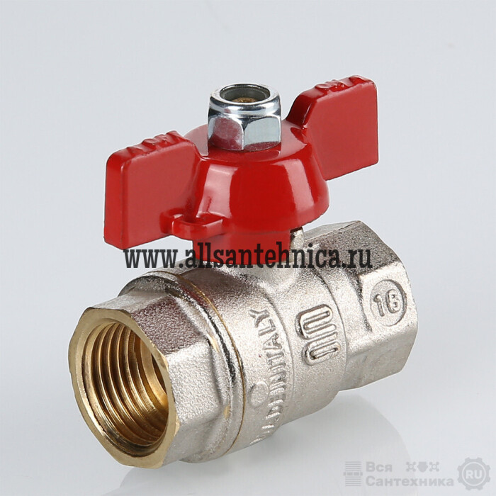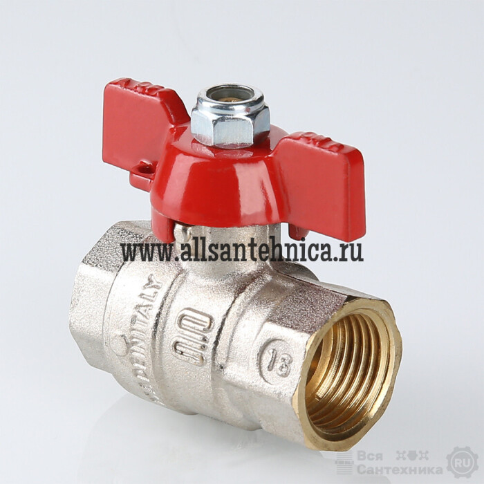 Шаровой кран S 217 оснащен ручкой «бабочка» из алюминиевого сплава. Резьба присоединений – внутренняя/внутренняя.