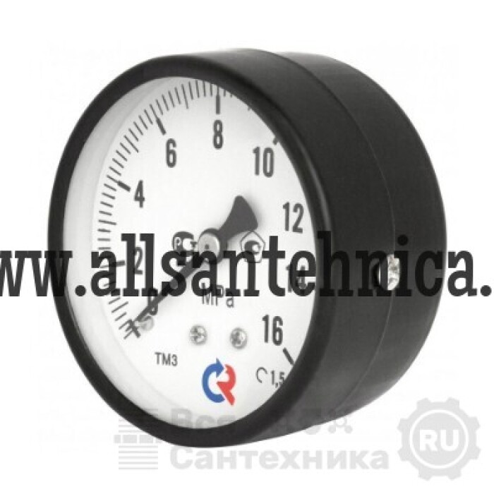 (TM-310T) Манометр общего назначения TM-310P предназначен для измерения избыточного давления не вязких и не кристаллизующихся жидкостей и газов, неагресcивных к медным сплавам. Максимальная рабочая температура – 150 °C. Измерительный механизм манометра – деформационного типа – выполнен из латуни, корпус – из стали. Диаметр корпуса – 63 мм. Диапазон измерений – от 0 до 4; 6; 10 или 16 бар, в зависимости от модели. Класс точности – 2,5. Присоединение – осевое (заднее), 1/4".