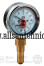 (ТМТБ-31P) Прибор предназначен для одновременного измерения избыточного давления и температуры воды и других сред, неагрессивных к сплавам меди. Он представляет собой объединенные в одном корпусе деформационный манометр и биметаллический термометр. Для снятия показаний предусмотрены две шкалы – давления и температуры. Комплектуется клапаном, позволяющим демонтировать термоманометр без разгерметизации системы. Класс точности – 2,5. Диаметр корпуса – 80 мм. Диапазон измеряемых температур – от 0 до 120 °С, давления – от 0 до 10 бар. Присоединение – радиальное (нижнее). Диаметр присоединения – 1/2".