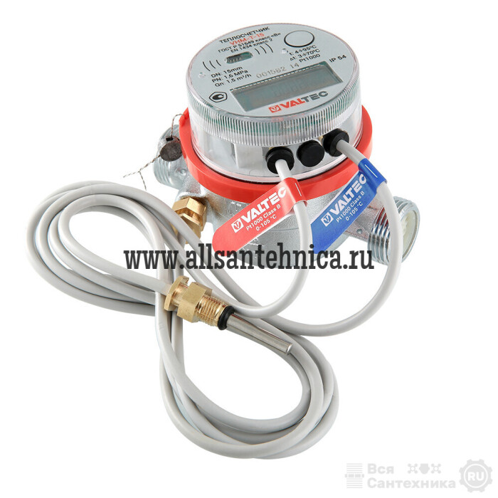 (VHM-T-С) Теплосчетчик предназначен для коммерческого учета тепловой энергии в водяных системах отопления и горячего водоснабжения, соответствует требованиям ГОСТ Р 51649. Квартирный теплосчетчик VALTEC VHM-T-С состоит из одноструйного тахометрического расходомера с латунным никелированным корпусом, двух платиновых датчиков температуры Pt 1000 (в комплекте – адаптеры на М10), электронного тепловычислителя с энергонезависимой памятью, архивом данных глубиной до 8 лет, встроенными часами наработки, выходом канала передачи данных стандарта RS-485. Класс точности прибора – B. Межповерочный интервал – 4 года. Срок службы – 12 лет. Гарантия – 36 месяцев от даты продажи.