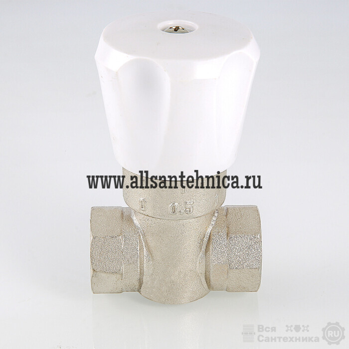 (VT.004.N) Проходной ручной регулирующий клапан с функцией предварительной настройки КРДП 11Б25бк. Конструкция клапана полностью исключает возможность вмешательства пользователя в монтажную настройку (она может производиться только на «сухом» стояке). Корпус и пробка клапана выполнены из латуни марки CW617N, никелированы, сальниковый узел – из тефлона. Кран ремонтопригоден. Максимальная рабочая температура теплоносителя – 150 °С, максимальное рабочее давление – 16 бар. Резьба присоединения – внутренняя/внутренняя.