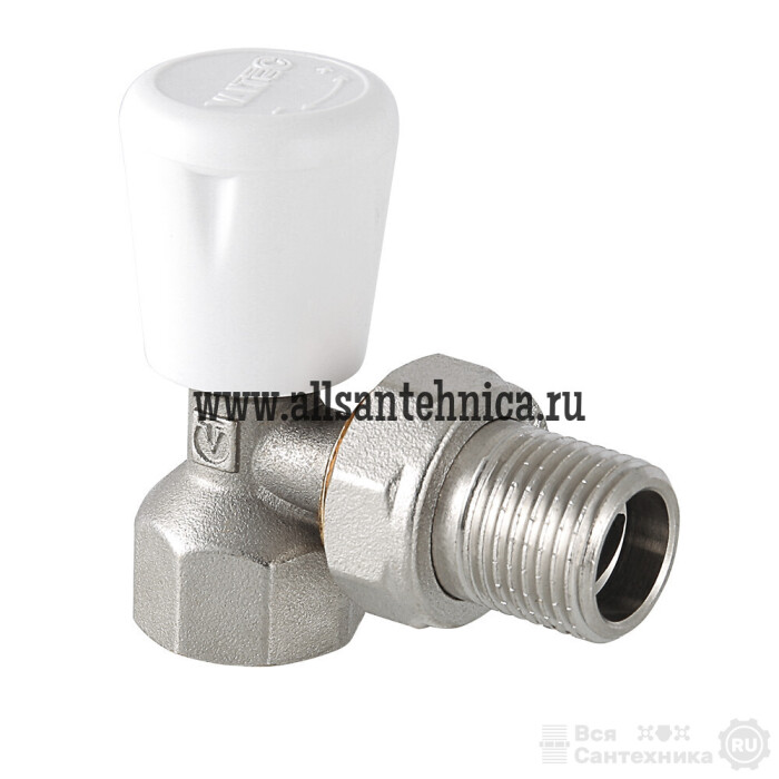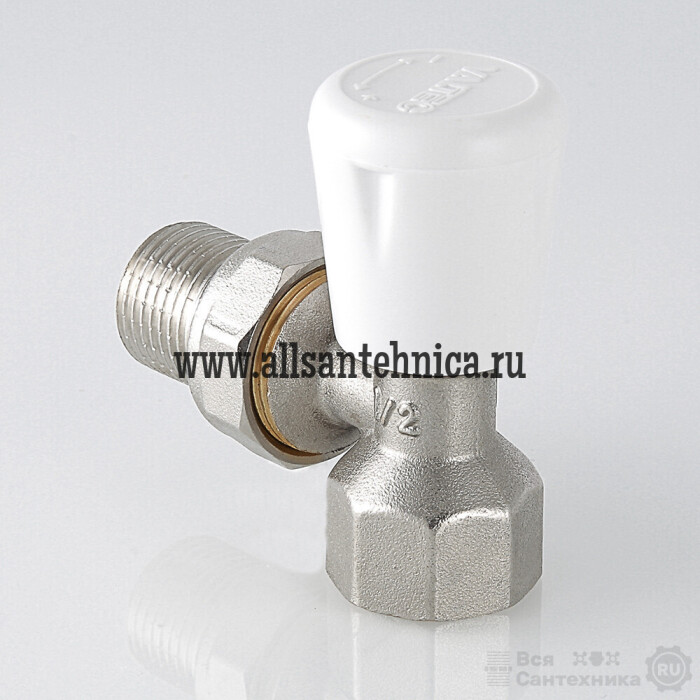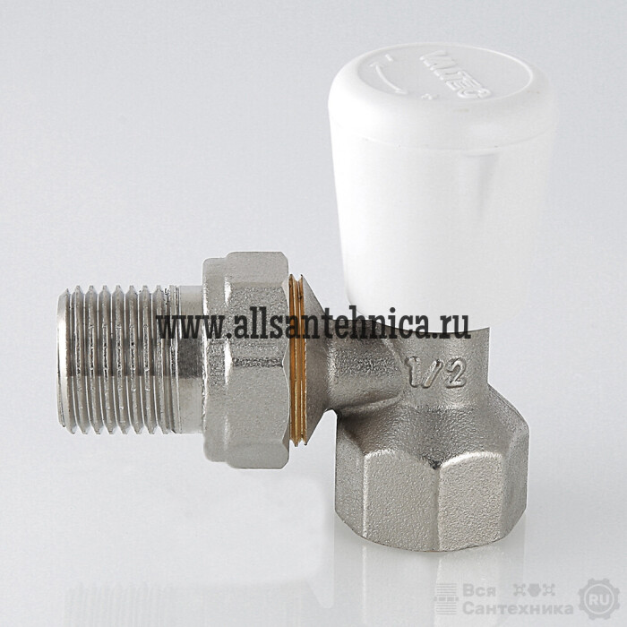 (VT.017.N) Угловой радиаторный клапан. Основное назначение – ручное плавное регулирование расхода теплоносителя через отопительный прибор. При замене регулировочной ручки на защитный колпачок может использоваться в качестве настроечного клапана. Наличие полусгона позволяет монтировать и демонтировать клапан без демонтажа трубопровода. Ремонтопригодный. Рабочая температура – до 110 °С, давление – до 10 бар. Резьба присоединений – внутренняя/наружная.