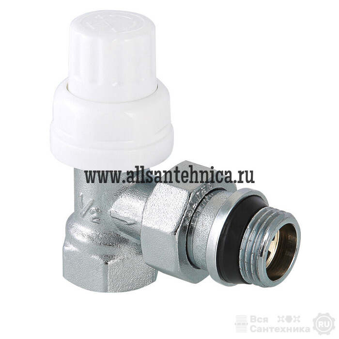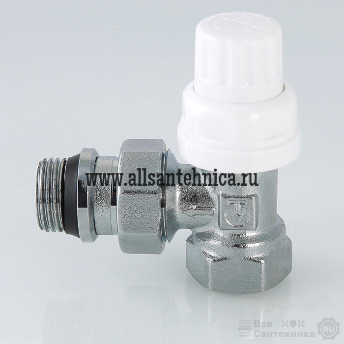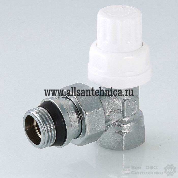 (VT.031.NR) Угловой клапан для ручного или автоматического регулирования расхода теплоносителя через отопительный прибор. Во втором случае комплектуется термостатической головкой или сервоприводом, управляемым комнатным термостатом или контроллером. Использование регулирующих клапанов VALTEC c термостатической головкой позволяет автоматически поддерживать заданную температуру в помещении с точностью до 1 °С. Наличие полусгона дает возможность монтировать и демонтировать клапан без демонтажа трубопровода. Ремонтопригодный. Рабочая температура – до 110 °С, давление – до 10 бар. Резьба трубных присоединений – внутренняя/наружная, для термостатической головки или сервопривода – наружная, М30 x 1,5. По наружной резьбе клапан снабжен дополнительным уплотнением из EPDM.