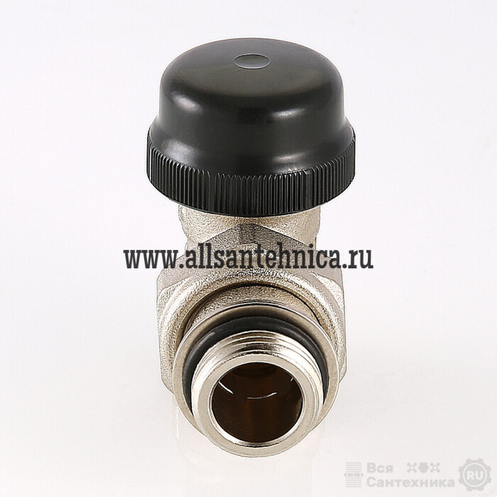 (VT.037.N) Угловой радиаторный клапан VT.037 предназначен для автоматического или ручного регулирования расхода теплоносителя через отопительный прибор водяной системы отопления с рабочей температурой до 110 °С и рабочим давлением до 1,0 МПа включительно. Клапан соответствует требованиям стандарта EN 215, часть 1 и ГОСТ 30815. Отличительной особенностью радиаторного клапана VT.037 является наличие в его конструкции втулки предварительной настройки (Kv = 0,1–0,6), которая позволяет производить гидравлическую балансировку приборов в двухтрубных системах водяного отопления. Таким образом клапан объединяет в себе функции термостатического регулирования и монтажной настройки, что позволяет отказаться от использования дополнительной настроечной арматуры (как правило, на выходе из отопительного прибора в двухтрубной системе устанавливается специальный настроечный клапан для гидравлической балансировки в ходе пусконаладочных работ).