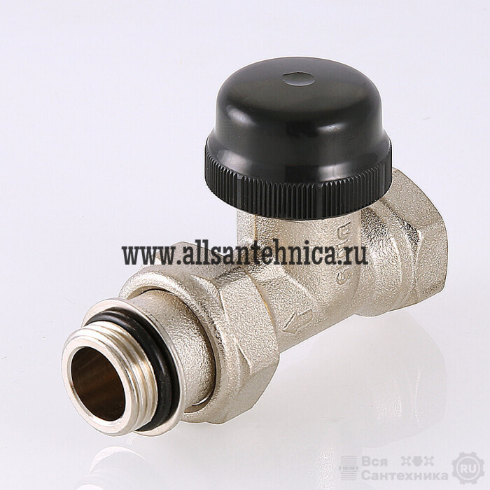 (VT.038.N) Прямой радиаторный клапан VT.038 предназначен для автоматического или ручного регулирования расхода теплоносителя через отопительный прибор водяной системы отопления с рабочей температурой до 110 °С и рабочим давлением до 1,0 МПа включительно. Клапан соответствует требованиям стандарта EN 215, часть 1 и ГОСТ 30815. Отличительной особенностью радиаторного клапана VT.038 является наличие в его конструкции втулки предварительной настройки (Kv = 0,1–0,6), которая позволяет производить гидравлическую балансировку приборов в двухтрубных системах водяного отопления. Таким образом клапан объединяет в себе функции термостатического регулирования и монтажной настройки, что позволяет отказаться от использования дополнительной настроечной арматуры (как правило, на выходе из отопительного прибора в двухтрубной системе устанавливается специальный настроечный клапан для гидравлической балансировки в ходе пусконаладочных работ).