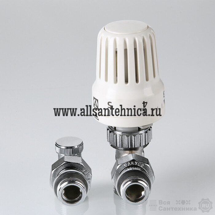 (VT.045.NER) Комплект терморегулирующего оборудования VT.045.NER включает в себя угловые термостатический и запорно-регулировочный (настроечный) радиаторные клапаны и термостатическую головку. Набор предназначен для бокового подключения прибора водяного отопления, автоматического регулирования расхода теплоносителя через него в зависимости от температуры воздуха в помещении, гидравлической балансировки системы отопления. Клапаны выполнены из качественной сантехнической латуни с гальваническим покрытием и оснащены самоуплотняющимися полусгонами. Колпачок ручной регулировки на термостатическом клапане состоит из двух частей – неподвижной нижней и вращающейся верхней. Это позволяет многократно производить монтажную настройку клапана в условиях строительства (до установки термостатической головки), не переживая за целостность резьбы на пластиковом колпачке. Комплект помещен в пылевлагозащитную упаковку (блистер). Стоимость данного комплекта меньше, чем при раздельной покупке входящих в него элементов.