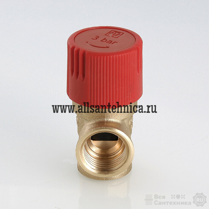 (VT.0490.IG) Клапан предохранительный нерегулируемый, c фиксированной заводской настройкой 1,5/3,0/6 бар (для удобства пользования введена цветовая маркировка: черный колпачок – 1,5 бара, красный – 3, желтый – 6 бар). Обеспечивает защиту от превышения давления водогрейных котлов, бойлеров, сосудов под давлением, систем отопления, напорных трубопроводов сбросом рабочей среды (в качестве рабочей среды может использоваться вода, растворы этиленгликоля или пропиленгликоля и другие жидкости, нейтральные по отношению к материалам клапана) в окружающую среду либо дренажный трубопровод. Максимальная рабочая температура – 115 °С. Предусмотрена возможность ручного открытия клапана предохранительного для проверки работоспособности, профилактики залипания золотниковой обоймы. Резьба присоединения – внутренняя, 1/2".