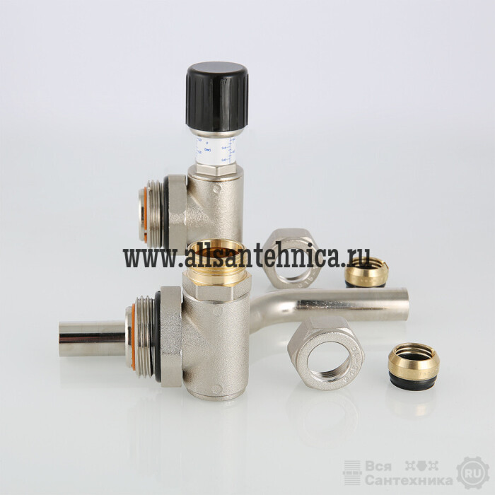 Место установки тупикового байпаса – противоположная относительно точек подключения сторона коллекторного узла. Материал корпуса – латунь марки CW617N, перепускной трубки – медь, уплотнений – EPDM. Гальванопокрытие – никелирование. Изделие применимо при температуре не выше 120 °C, давлении до 10 бар. Диапазон настройки перепада давлений – 20–60 кПа, пропускная способность Kvs – 4,33 м3/ч.