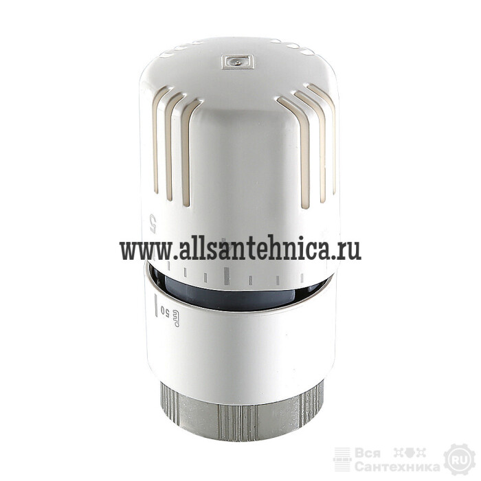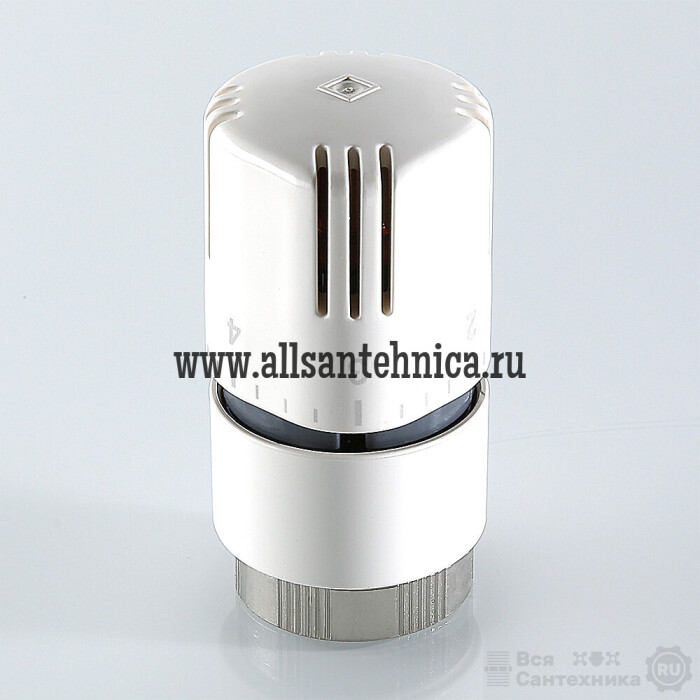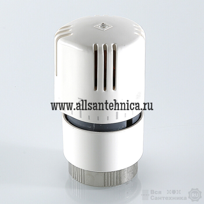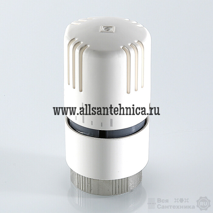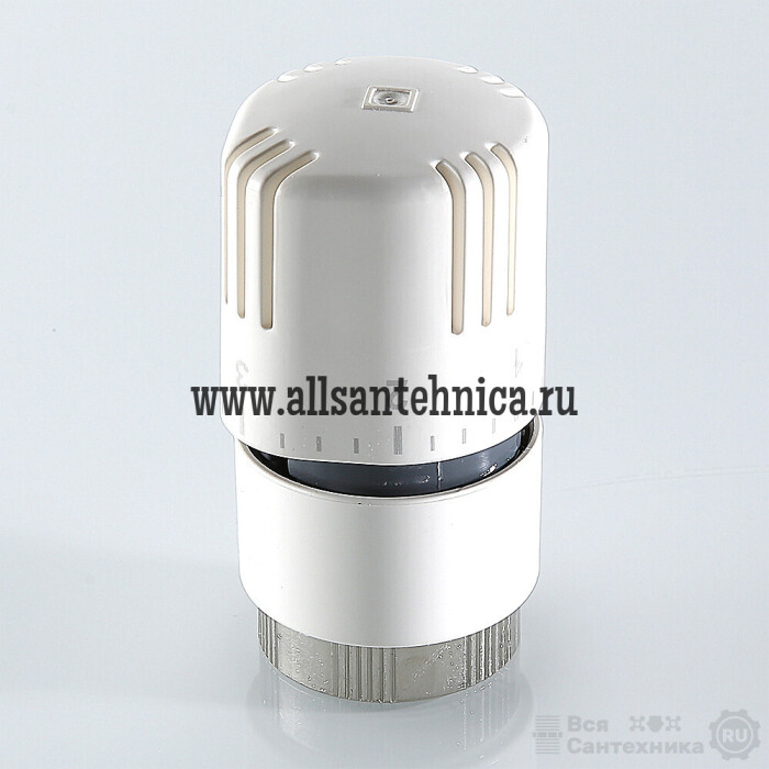 (VT.1000.0) Термостатическая головка устанавливается на термостатический радиаторный клапан и предназначена для автоматического регулирования расхода теплоносителя через отопительный прибор в зависимости от температуры воздуха в помещении. Использование регулирующих клапанов VALTEC c термостатической головкой позволяет автоматически поддерживать заданную температуру в помещении с точностью до 1 °С. Наполнитель сильфона (термочувствительного элемента) – парафин. Диапазон регулирования температуры воздуха – от 6,5 до 27,5 °С. Присоединение головки к клапану осуществляется с помощью накидной гайки с резьбой М30 x 1,5.